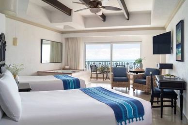 Spectacular 758 sq ft suites including wrap-around balcony offering dramatic oceanfront views. Ocean Front rooms feature unobstructed ocean views. Room features Nespresso coffee maker, soft drinks and snacks, and exclusive access to Zen Spa Water Journey*.